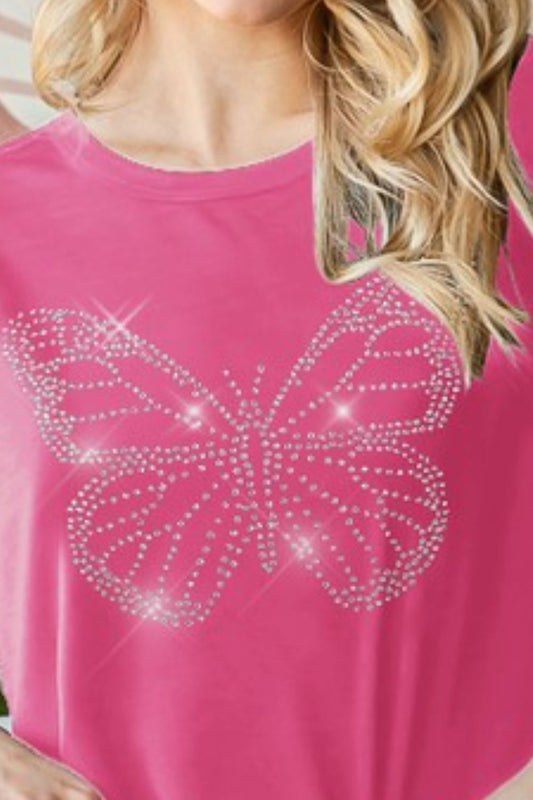 Heimish Full Size Rhinestone Butterfly Round Neck Short Sleeve T-Shirt Plus Size