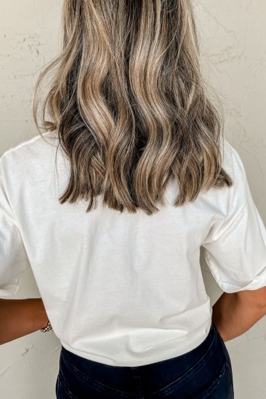 Aemi + Co Side Slit V-Neck Short Rolled Sleeve T-Shirt